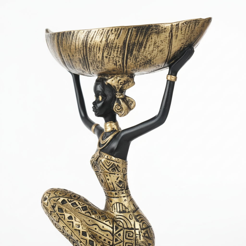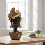 Enhance your interior with the artistic beauty of the ARTFORT African Lady Bust Statue. This elegant decorative sculpture showcases a graceful African lady adorned with intricate jewelry and a stunning butterfly headpiece, finished in a luxurious black and gold tone. Crafted from high quality polyresin, this decorative figurine offers durability while maintaining fine artistic detailing. The hand painted finish highlights the elegant facial features, jewelry design and textured crown, giving the sculpture a premium decorative appearance. The stylish bust design makes it perfect for placement on living room tables, office desks, shelves, console tables or display cabinets. Its balanced size allows it to stand out as a decorative centerpiece while complementing modern, classic or artistic interiors. Whether used for personal home decoration or gifted for special occasions, this ARTFORT decorative sculpture adds sophistication, culture and artistic charm to any space.