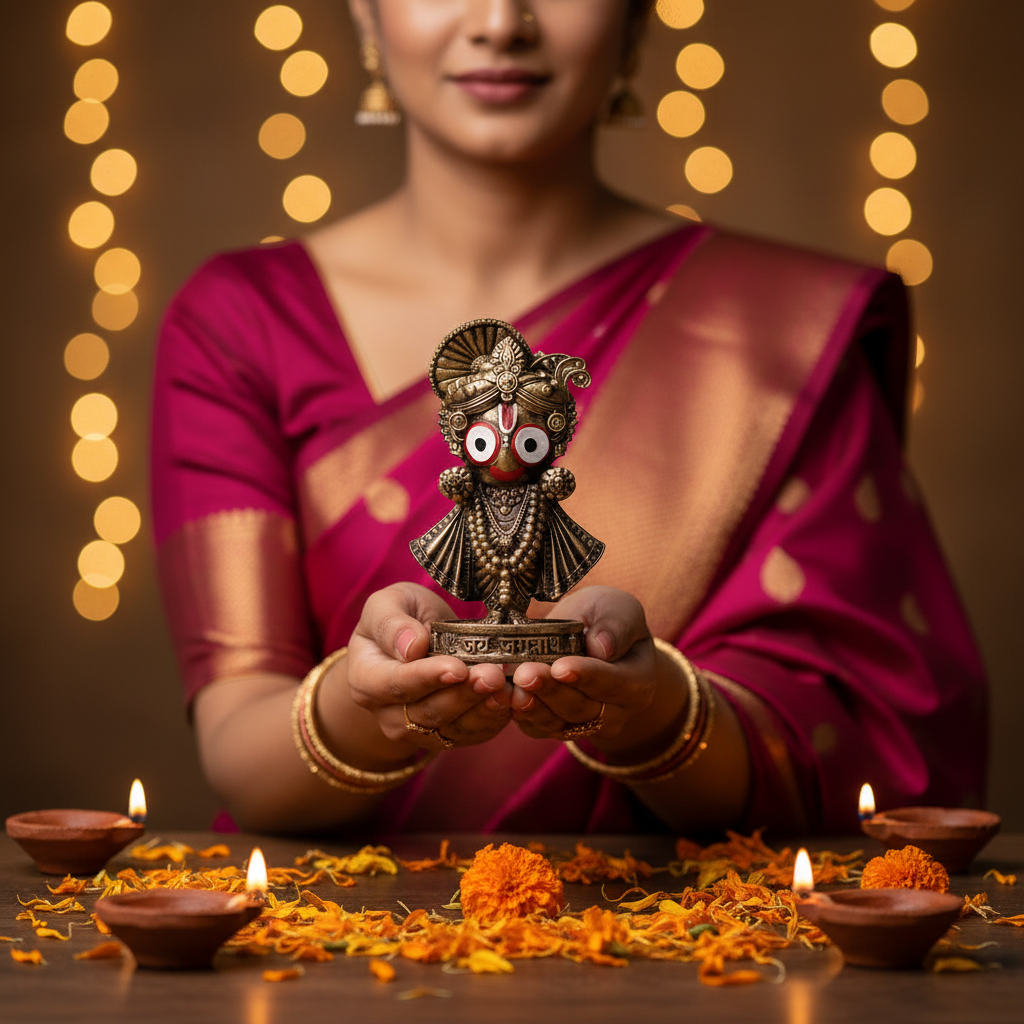 Bring divine energy and traditional elegance into your space with this ARTFORT Lord Jagannath Idol. Crafted with devotion, this 4-inch Jagannath Ji murti reflects spiritual heritage and fine craftsmanship inspired by the sacred traditions of Puri. Made from premium quality polyresin, the idol features a hand-painted finish, intricate ornaments, and vibrant yet soothing colors. Its compact and lightweight design makes it ideal for placement in your home temple, car dashboard, office desk, or study table. This Jagannath idol is more than decor.it is a symbol of positivity, peace, and divine blessings, making it an excellent choice for both personal worship and gifting purposes.